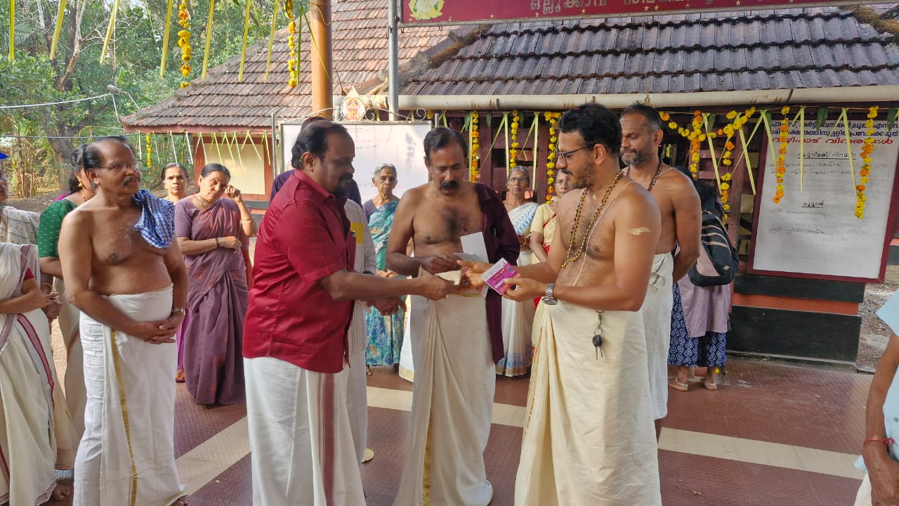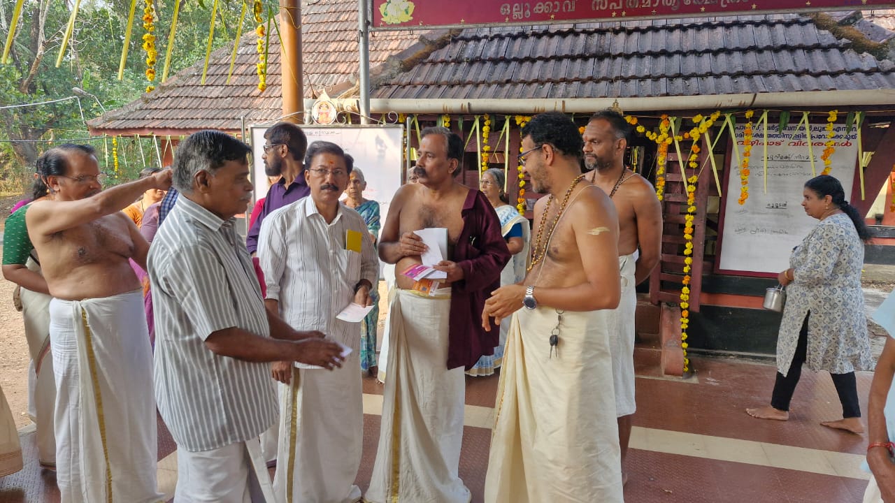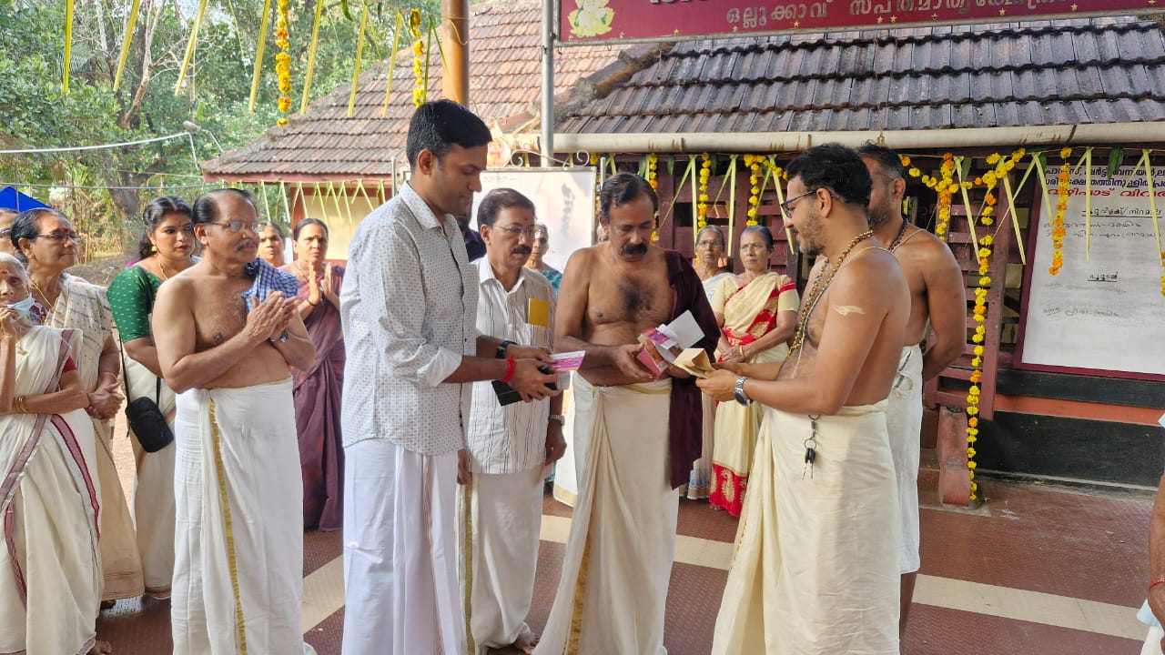 പ്രതിഷ്ഠ ദിനമായ 29-01-26 വ്യാഴാഴ്ച ഒല്ലൂക്കാവ് സപ്ത മാതൃ ക്ഷേത്ര മാതൃശാല ചെമ്പോല നെയുന്നതിനു വേണ്ടി ധനസമാഹരണത്തിന്റെ ഭാഗമായി ചെമ്പോല കൂപ്പൺ വിതരണോതഘാടനം ക്ഷേത്രം തന്ത്രി ബ്രപ്മശ്രീ തരണനെല്ലോർ പടിഞ്ഞാറെ മനയ്ക്കൽ അനിപ്രകാശ് നമ്പൂതിരിപ്പാട് നിർവഹിക്കുന്നത്തിന്റെ ഫോട്ടോകൾ മുകളിൽ കൊടുത്തിരിക്കുന്നത്. അന്ന് ഒരു ലക്ഷം അമ്പതിനായിരം ഇരുപത്തിയായിരം രൂപയുടെ കൂപണുകൾ ആണ് വിതരണം ചെയ്തത്.